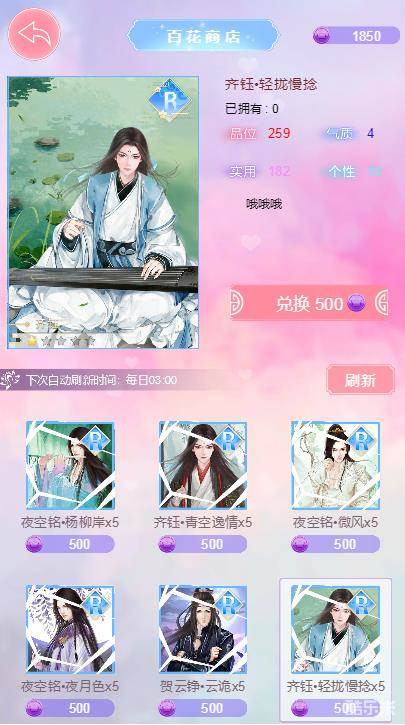 3、使用百花勋章可以在百花商店购买缘卡碎片