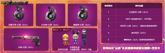 8月1日起,十周年“英雄”礼包限时开售,包含高爆手雷-幻兽(永久)、闪光弹-幻兽(永久)、烟雾弹-幻兽(永久)、沙鹰-幻兽(永久)以及交易所礼盒,另有“从心”礼包源雷神或源火麒麟+改名卡同步登陆上线,十周年礼包此后绝版,将不再售卖,喜欢的玩家千万不要错过。