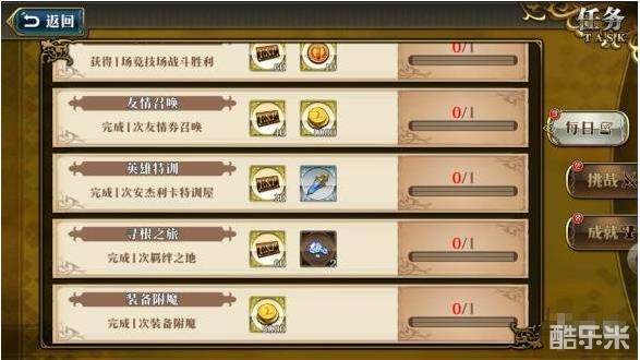 每天完成每日任务不仅能够快速升级,还能获得一定的资源。通过每日任务大家也能够明确每天的目标,在艾路萨莉亚大陆上冒险时再也不迷茫啦。
