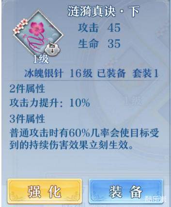 3件套:普通攻击时有60%几率会使目标受到的持续伤害效果立即生效。