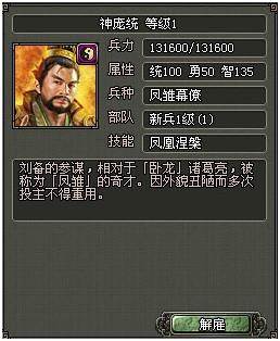 乱世天下武将神庞统技能属性: