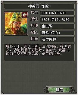 乱世天下武将神关羽技能属性: