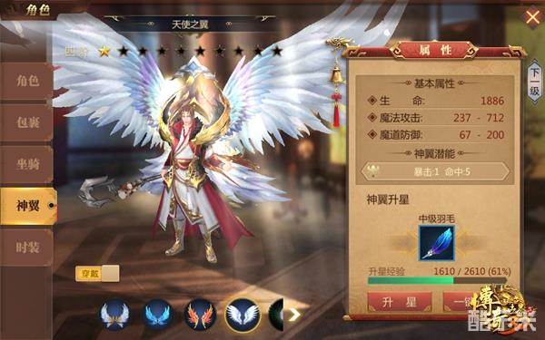 升级神翼勇士们不仅能获得强力的属性,还将获得非常华丽的外观,神翼突破后将解锁全新的神翼外观。外观不仅让我们拥有帅气的外表,高级神翼外观还可以对敌人起到一定的震慑作用,让其他勇士见你就退避三舍。
