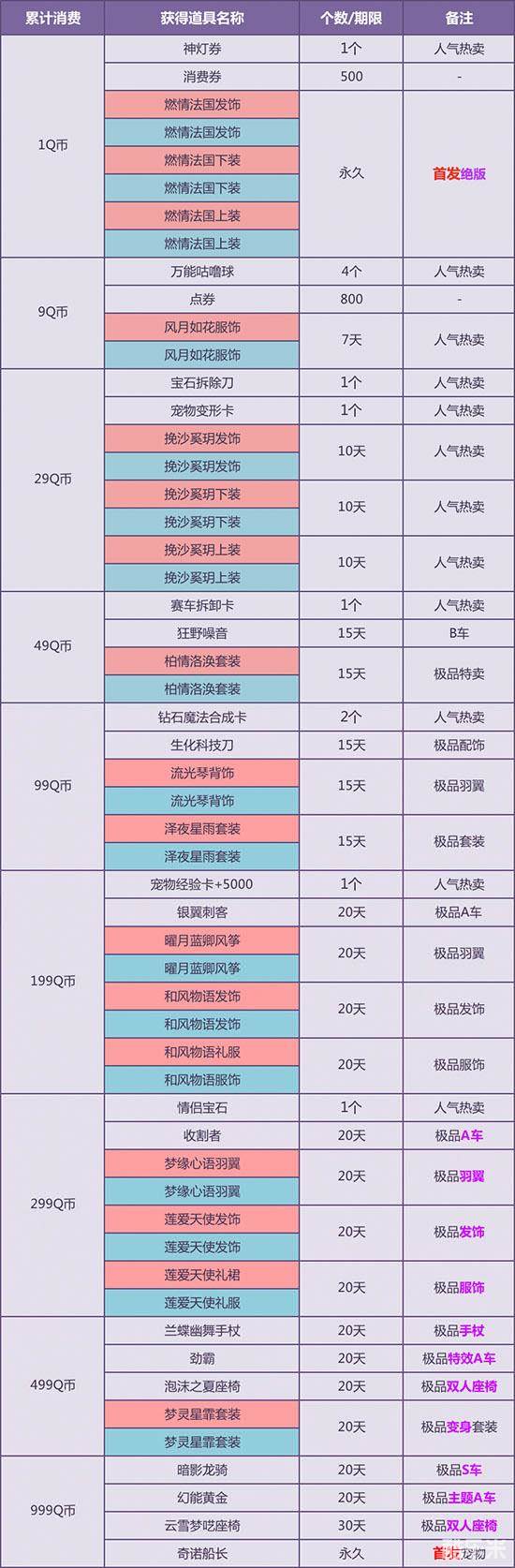 QQ飞车8月消费送礼 1Q币领绝版特色服饰
