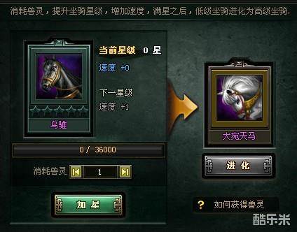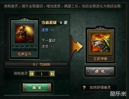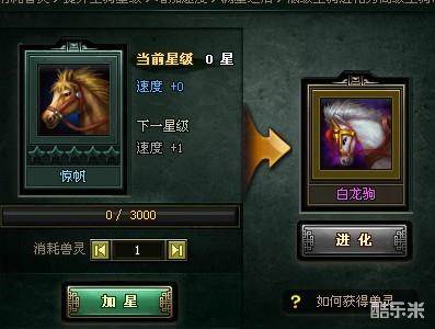 马儿的进化前提是马儿需成为5星战马,每个星级需消耗兽灵