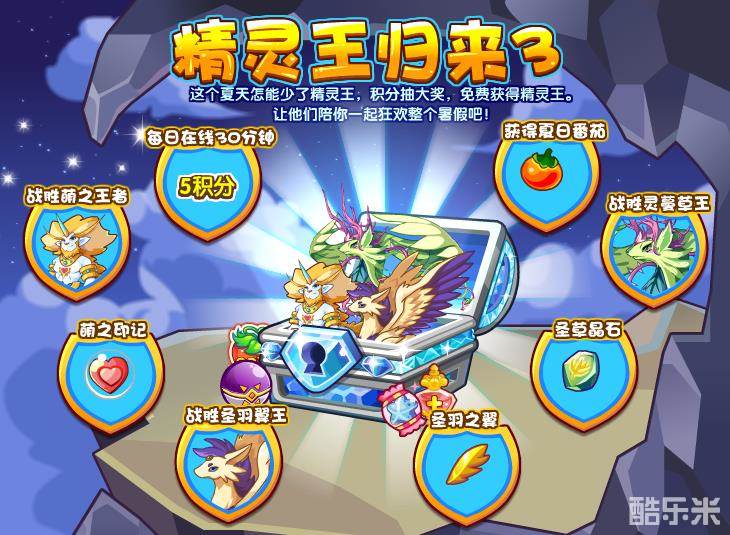 本周登场的是萌之王者、圣羽翼王、灵蔓草王三大精灵王来陪你过暑假啦!