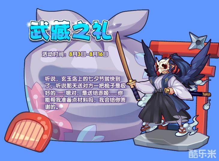 听说,玄玉岛上的七夕节快到了,听说那天送对方一把梳子是极好的。于是武藏打算真给赤姬做一个。你愿意帮他搜集材料吗?