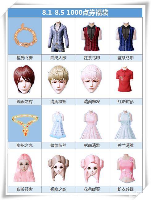 8.1-8.5,为了庆祝即将到来的4周年,商城将会上架全新的1000点券福袋,里面有金币脚链和多款点券精品哦~大家还在等什么,快来抽取吧~