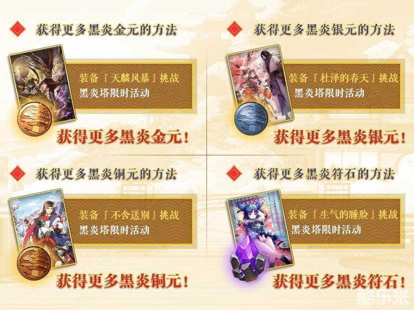 ※「黑炎铜元」、「黑炎银元」、「黑炎金元」在谢幕期结束后将被删除。