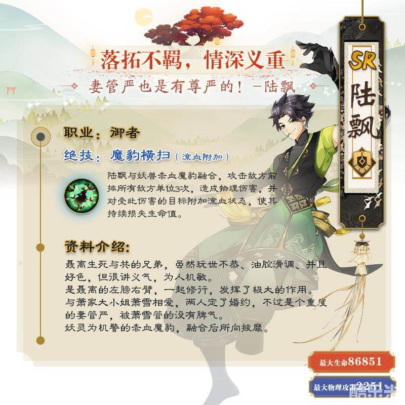 努力的推进关卡,获得妖灵师「SR陆飘」吧!