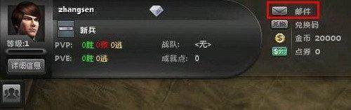 在角色信息右方您可以看到:邮件、兑换码等信息。点击"邮件"图标打开邮件窗口,可以进行收发邮件的操作。