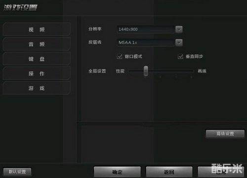 点击"游戏设置"可以对视频、音频、键盘、操作、游戏等方面进行设置。