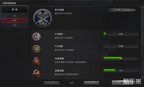 * 点击玩家详细资料中的“成就”标签,进入成就页面
