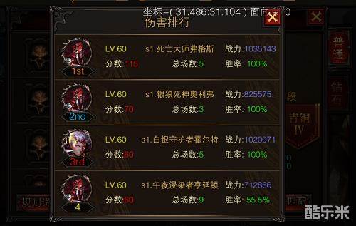 5)混沌战场排名以玩家分数为准,系统根据玩家分数高低进行排名.