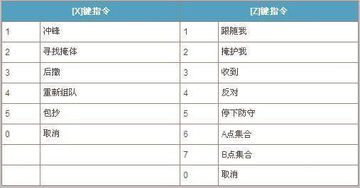 在游戏中按Z键或X键,调出快捷指令界面,根据快捷指令的编号,按下键盘上对应的数字发出快捷指令
