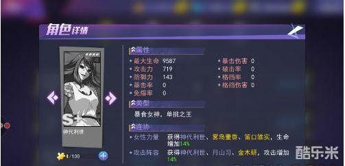 神代利世相信大家都熟悉,因为在游戏一开始的时候使用过,手感上个人觉得还是比较不错的,并且技能伤害方面也还行,感觉就是金木研的升级版。被动方面增强的很全面,生命值、攻击力、防御力和暴击方面都有提升,在后期是个很不错的输出角色。连协方面只有两条比较难弄一点,其余的都还是容易达到的。在获得上对于平民玩家来说还是比较困难的,需要花很长很长时间才能够获得,所以平民玩家还是不要太奢望使用神代利世,土豪玩家可以培养一下。
