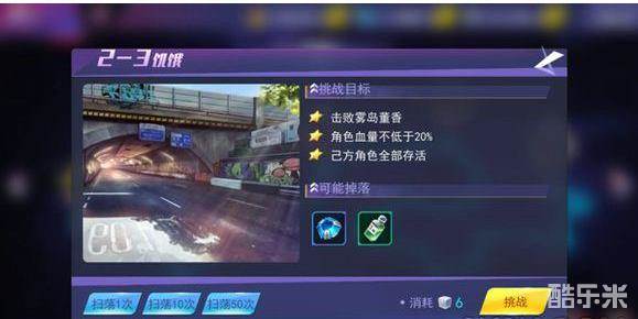普通难度2-3拥有三个挑战目标,要求都并不是特殊,角色保持20%以上的血量击败BOSS即可三星通关了,让我们进入实战分析吧!