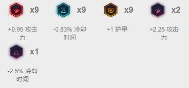 目前这种上单雷恩加尔的打法是尽快在前期堆满冷却缩减,由于雷恩加尔不吃攻速,所以红色和部分精华带攻击力,黄色带护甲应付前期对线,蓝色带上9个固定减冷却,精华也带1个固定减冷却,这种打法的雷恩加尔出门就10%冷却缩减,暮刃在改版后也有10%,之后无论补幽梦或者黑切都能够很快凑到40%冷却缩减,极限冷却下的雷恩加尔很容易在先手满残暴值Q技能起手后再打出另一个Q技能,毕竟刺客流雷恩加尔就是靠技能伤害爆发秒人。