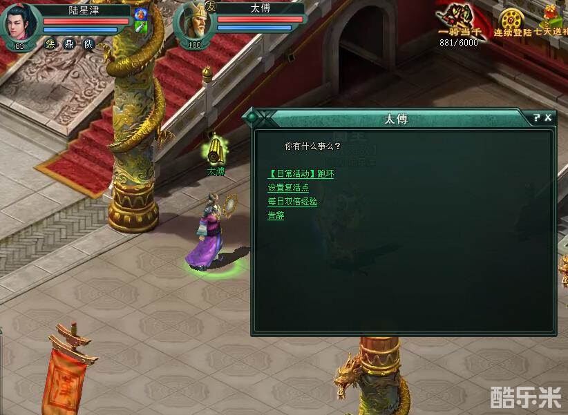 玩家等级达到30级以后,可以在洛阳的太傅NPC(180,131)处接取跑环任务;