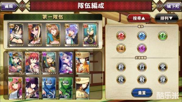 所有的武将都拥有「火」「水」「木」「阳」「月」其中一种属性,相克的属性造成的伤害会增加,受到的伤害会减少