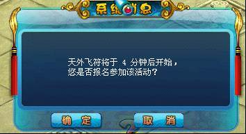 1.活动开始前5分钟,根据系统提示报名参加5分钟后的天外飞符活动。
