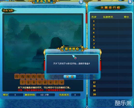 玩家根据系统提示可报名参加天外飞符活动,通过键盘释放飞符,将修者击落获得积分。活动看似简单,但是要求玩家手、脑、速度并用,别有一番乐趣。