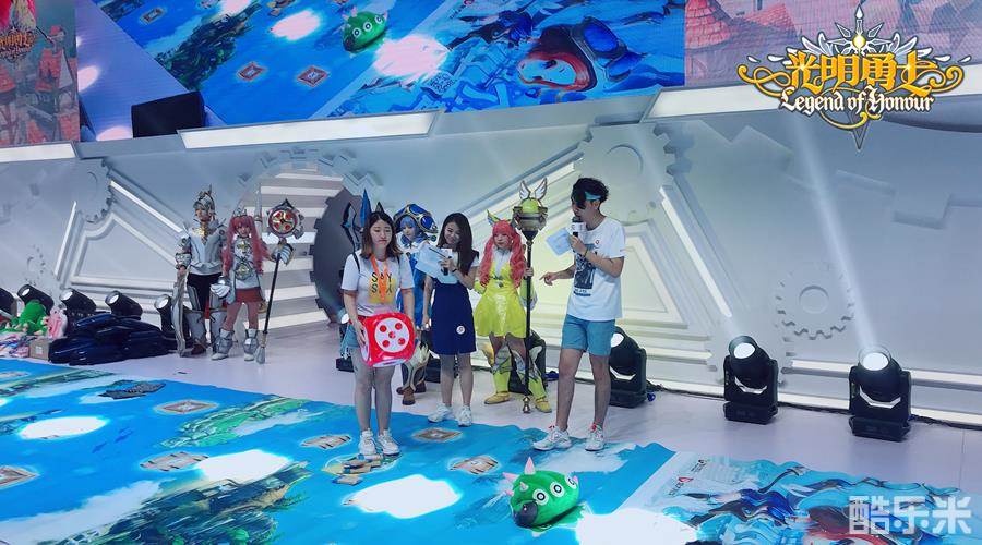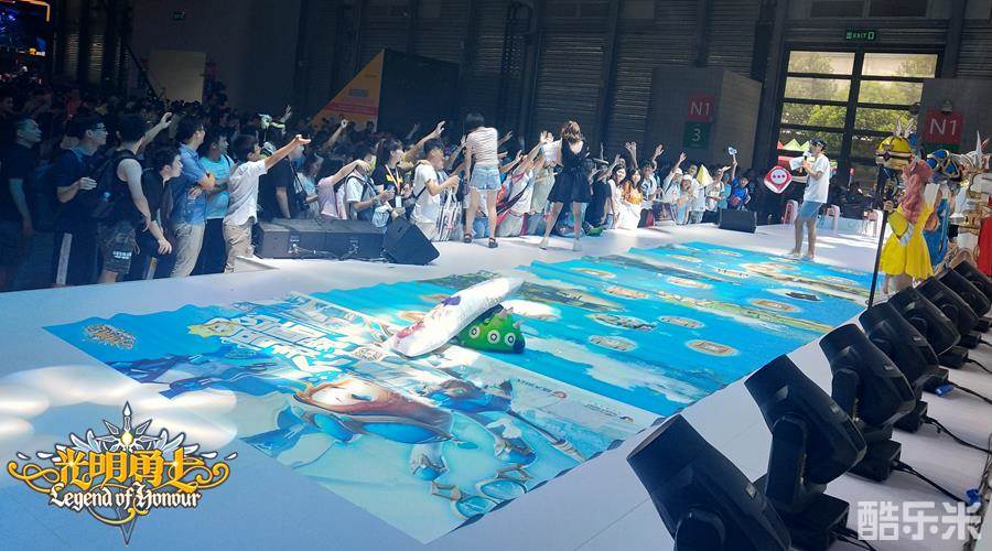 《光明勇士》中可爱的休闲的“跳一跳”玩法,此次终于突破了次元壁的束缚,在“新游主题日”被搬到盛大游戏ChinaJoy的主舞台现场。萌主们通过掷骰子,决定自己前进多少格,而且必须通过“跳一跳”的方式前进,颇有小时候玩“跳房子”的感觉,可以说是很治愈、很减压了。