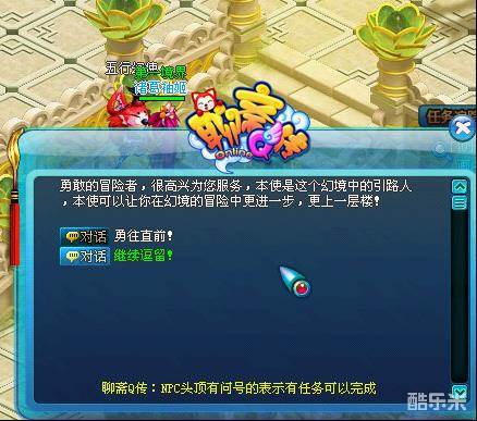 3.玩家在不同层次可以跟不同NPC对话,选择继续激流勇进、勇往直前或是继续逗留,不同NPC可以将玩家送往不同层次完成活动任务,获得不同奖励。