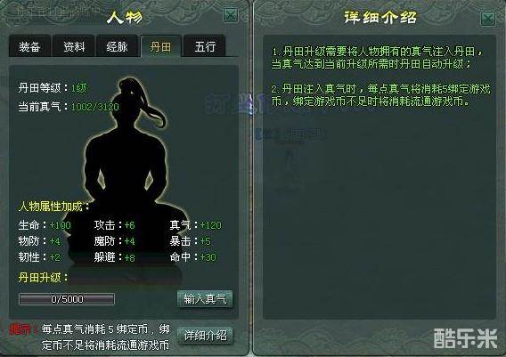 3.通过用升级经验来兑换真气(按“C”点资料可以查看到界面)