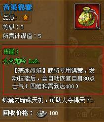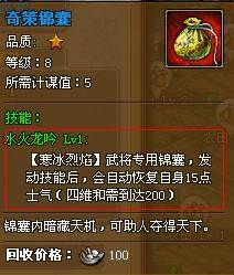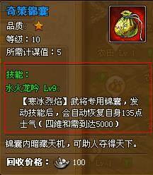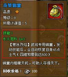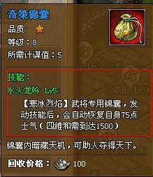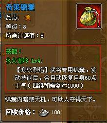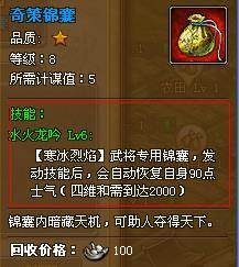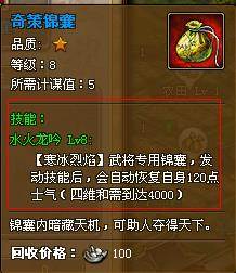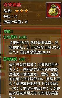 1、专用锦囊技能【水火龙吟】,10级后,每次发动技能,锦囊可自动恢复150点士气,保证下一回合仅需释放技能;(不能够通过洗练获得该条属性)