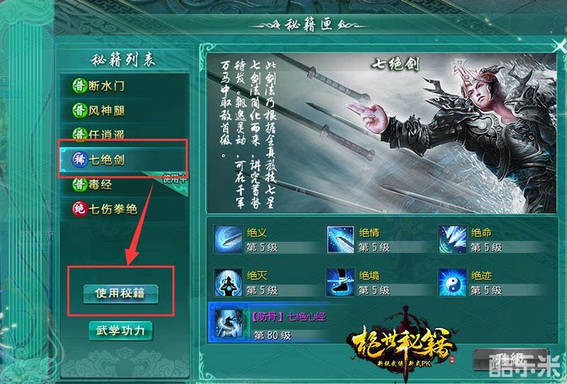 秘籍共有6类:刀、剑、扇、手、毒、拳;