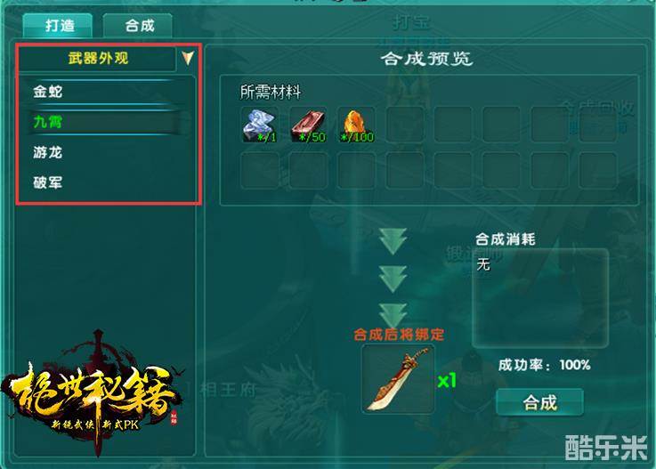 集齐所需材料后,可以在主城锻造大师处打造部分兵器