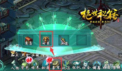 时尚何须分古今,2D自由武侠PK经典《绝世秘籍》中,时装收集能使少侠们在古代武背景下不落俗套,玩转时尚。点击右下角的集市选择时装即可查看百变衣橱界面。