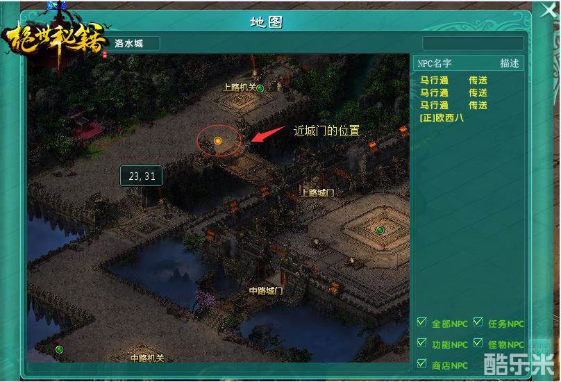 城池战有六个路口,上路近机关,上路近城门,中路近机关,中路近城门,下路近机关,下路近城门。可以根据战场情况,选择以控制机关为主,还是城门前混战为主。