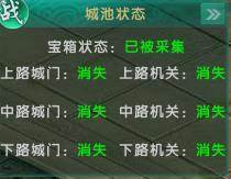 在游戏右上角可以查看城池状态,包括三个机关开启关闭状态,及中间龙椅是否被采集。当宝箱被采集后,机关消失。城池争夺结束。