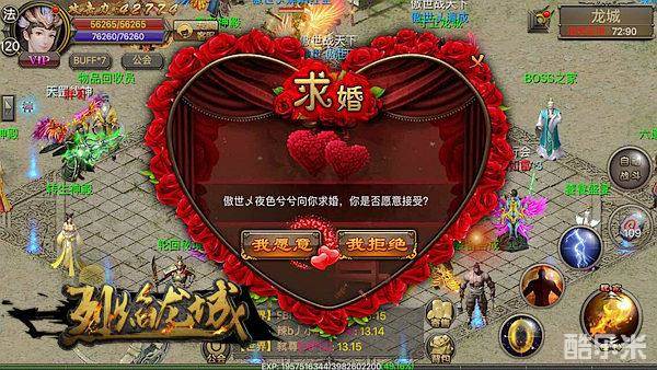 《烈焰龙城》结婚系统区别于其他手游的平淡无奇,为相爱的新人们献上最隆重的结婚仪式,奏响浪漫的婚礼进行曲。当玩家傲世乄夜色兮兮在月老处,拿出求婚戒指向傲世乄素衣浅浅表白求婚成功后,全服通告这个普天同庆的消息,让天下共同见证。玩家们纷纷在世界发出祝福生意,不少女玩家表示被感动到了!相信这一刹那将变为两人永恒的唯美回忆。同时新人还举办盛大结婚宴席,邀请公会兄弟、亲朋好友参与婚宴,洒下喜糖,共同推倒BOSS,一起分享婚礼的乐趣!如此浪漫的婚礼仪式,是上天对有情人爱的祝福,只为夜色兮兮和素衣浅浅收获这段美好的记忆,铭记此刻的龙城时光!