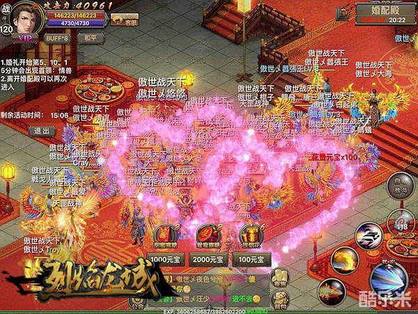 恭喜玩家喜结连理:傲世乄夜色兮兮、傲世乄素衣浅浅
