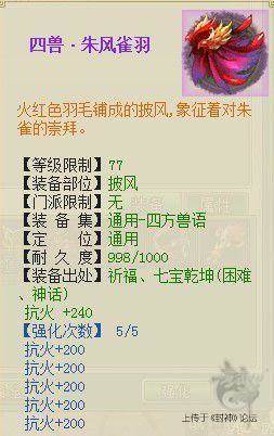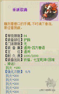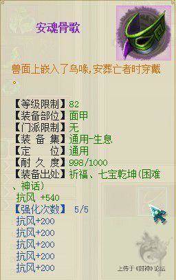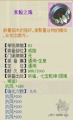 让我们先来说一下装备的搭配法吧。 已经到达开光的童鞋会发现,开光境界的通用装备属性是抗水、火、风、地,还有加速、防御的装备。 所以,要像提升奶妈的生存能力,就必须要舍弃某些属性,穿上一套抗性装备。(根据战况 选择佩戴不同的抗法属性装备。)由于抗性装备有好多,在此不一一列举。我们就先拿 抗风和抗火的装备来做示例吧: