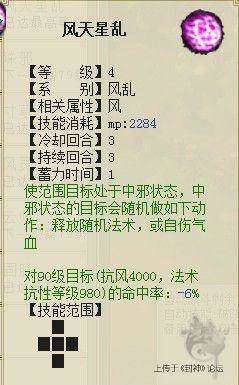 此为满技能 4级技能。 对90级目标,抗风4000,法术抗性980的命中几率为 -6%