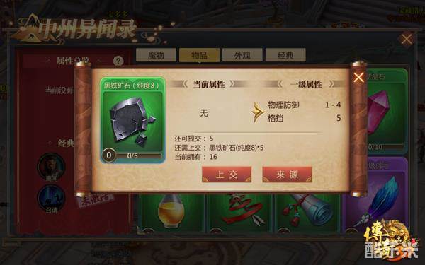 2. 物品:物品类的异闻只要有相应的道具,便可直接提交来升级异闻录,比如矿石、羽毛、晶石等都可以直接上交,身家较为丰厚的勇士收集起物品想必是很轻松的。