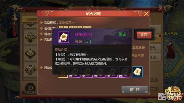 在当前阶段获取结义技能书的途径主要有三种,分别为功勋商人、焰火屠魔和拍卖行。首先功勋商人处只能购买蓝色结义技能碎片,每10个结义技能碎片可以合成一本结义技能书,大伙点击之后即可学习。除此之外,结义技能碎片还分解成技能丹用来提升结义技能的等级。而在焰火屠魔处却能获取紫色和蓝色的结义技能碎片,不过焰火屠魔属于限时活动,如果想要扩大收益的话,大伙一定要牢牢记住开启时间,千万不要错过。至于拍卖行则是入手结义技能最好的途径,不过在进入拍卖行之前最好多准备一些元宝,这样就可以大肆采购一番。