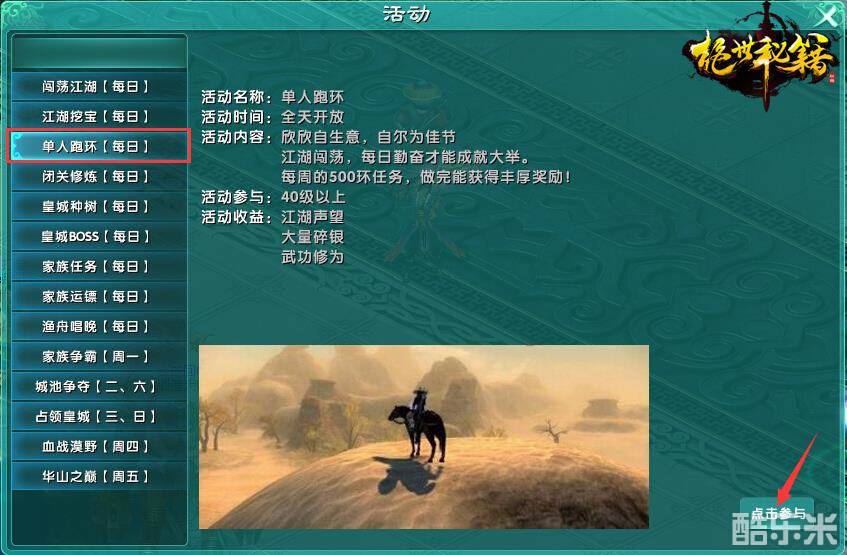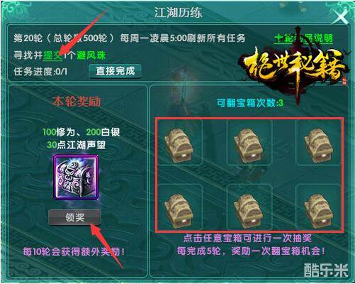 40级以上的玩家,每周可以参加最多500环的江湖历练任务,通过跑环和提交道具,以获得大量奖励。