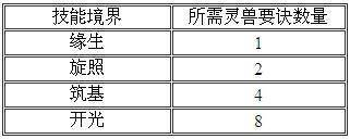 6、灵兽出生时,技能栏中已亮起技能的境界,不会超过灵兽出生地的境界,并且灵兽的出生地的境界越高,就可能携带更多的技能。