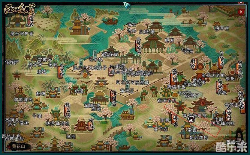 如图,只能在西岐城东集市坐标(455,129)(479,140)(654,57)(627,42) 圈成的矩形区域摆摊。