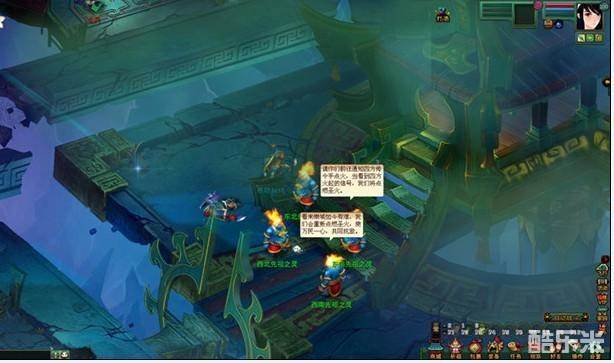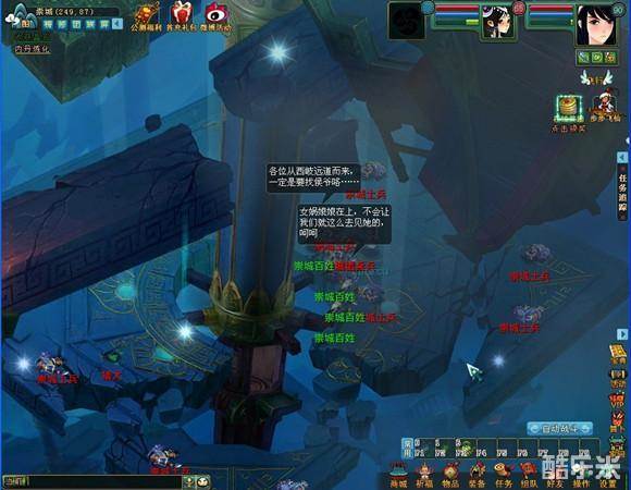 5、通过百姓柱子身后的折跃点上升到上方的平台上,清理所有的杂兵(可以使用小小宝将其炸死),祭祀获救。获救的祭祀们要求玩家继续通过身后上行的折跃点到达中心广场,并清理广场上的2个杂兵,好让他们举行召唤仪式,召唤崇城之灵。