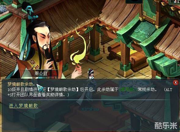 1、 单人前往NPC周公旦(西岐403,232)处对话,选择“进入梦境朝歌”,在选择难度“普通”后进入杀劫;