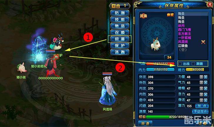 在野外看到心仪的伙伴,可以把他招募过来,成为你的伙伴。 成为伙伴之后,就可以与你共同参战了。 每个伙伴都有其不同的特点。