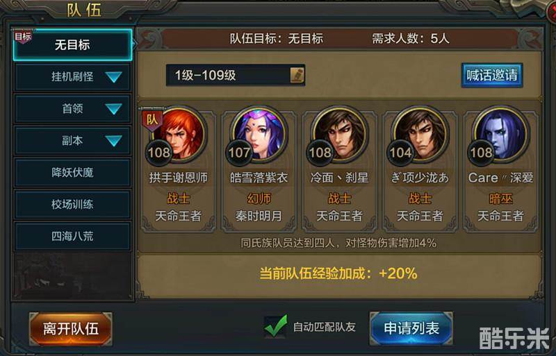 队伍组合搭配中,选用两个刀盾战士,作为抗伤、保障归属的首选。跨服首领地图开启后,组好队伍、选择好目标BOSS后快速前往,近战职业可为队友分摊伤害,远程职业可以安心施放技能,如此便可轻松击杀!