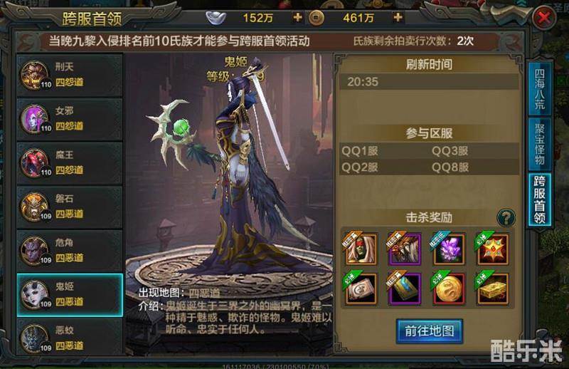 最后编辑于7年前除了PK以外,在《QQ华夏》手游中颇受玩家喜爱的玩法可能就是击杀BOSS了。此次更新的“跨服首领”版本,在四恶道中也出现了全新的跨服BOSS——鬼姬。今天就为大家带来鬼姬的打法解析。