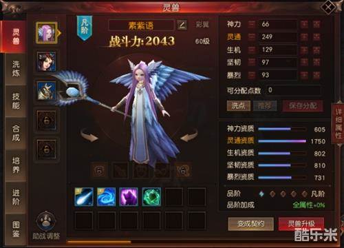 灵兽可以协助主人进行战斗,灵兽分为法术输出,物理输出,坦克与治疗等类型。灵兽蓝色、黄色、紫色及橙色品质灵兽,品质越高的灵兽基础属性越好,提供的战斗力加成越多。
